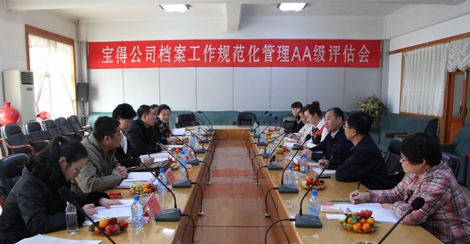 1月31日,由遼寧省檔案局業(yè)務(wù)指導(dǎo)處歐平處長、副處長葛仁軍、科員于佳,市檔案局趙壽安副局長、王一鳴處長、楊琳副處長組成的評(píng)估組,到公司進(jìn)行檔案工作規(guī)范化管理“AA”級(jí)評(píng)估,經(jīng)過認(rèn)真細(xì)致的檢查,一致通過了公司檔案工作規(guī)范化管理“AA”級(jí)評(píng)估。