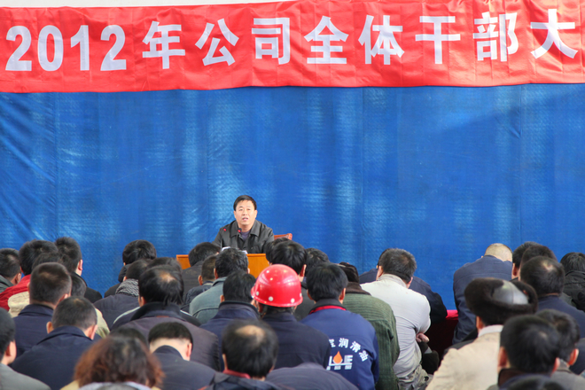 2012年1月11日,公司在網球場召開全體干部大會,總經理做上年度工作總結及當前形勢分析,董事長做題為“全面提升企業(yè)綜合實力 蓄勢待發(fā) 穩(wěn)中求進”的重要講話。